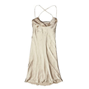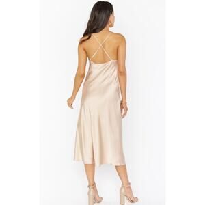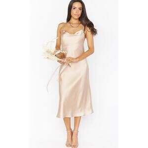 Show Me Your Mumu Verona Satin Dress Sz XS Champagne Silky Cowl Neck Midi Slip