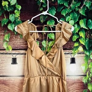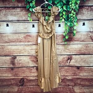 Show Me Your Mumu Weddings Samantha Ruffle Wrap Dress Medium Gold Champagne Bridesmaid Prom Homecoming Ball Gown Midi