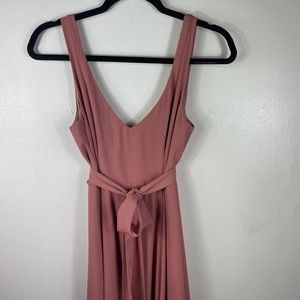 Show Me Your Mumu Weddings Jen Maxi Dress Dusty Blush Crisp Size XS Small. Dress comes with a tie that can be used around the waist or in the hair. Previously owned with a few flaws like some loose threads on the bottom hem and faint spots in the armpit, all major flaws pointed out in photos, overall good wearable condition. Chest: 32" Waist: 25" Length: 58" measurements are approximate in a flat lay.