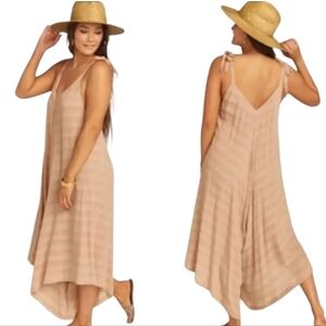 Looks like a dress but is actually a wide leg Jumpsuit, adjustable tie straps, 100% Rayon