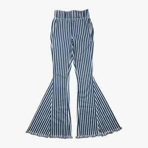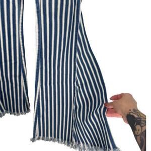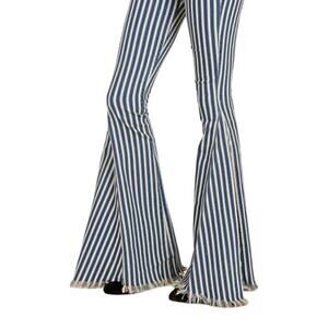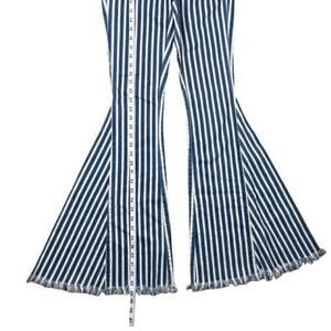 Show Me Your Mumu Blue Womens Berkeley Bell Bottom Pants Striped Raw Hem Blue White Size XS