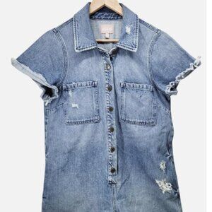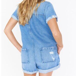 Show Me Your Mumu Women's Denim Ranger Romper Large Distressed Button-Up