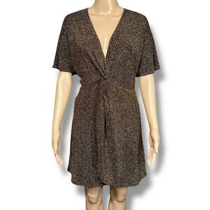 Show Me Your Mumu Womens Get Twisted Mini Dress V Neck Stretch Gold Black Medium