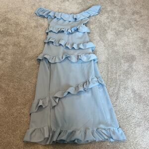 All orders ship within 1-3 business days. This women's maxi dress is made by Show Me Your Mumu. Color is a light baby blue (Steel Blue Stretch). Size is M. Excellent condition. Fabric is polyester and spandex. Make me an offer! Although clothing is not visibly soiled we recommend washing all preloved items before wear.