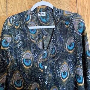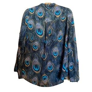 Show Me Your Mumu Womens Size XS Multicolor Peacock Feather Print Blouse Top
