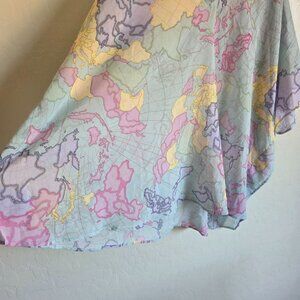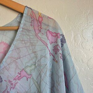 Show Me Your Mumu World Tour Peta Tunic Globe Map Print Blue/Multicolor Chiffon Sheer Size Women's Medium Top Cover Up