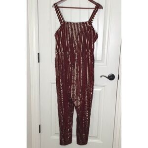 Show Me Your Mumu Yvonne Jumpsuit Maroon and Gold Stripe Size Large.