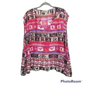 Show Me Your Mumu hieroglyphic tribal print multi colored sheer top