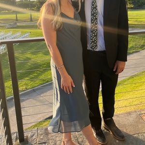 Worn once at a wedding. Super small stains as seen in pictures. Hasn’t been dry cleaned.