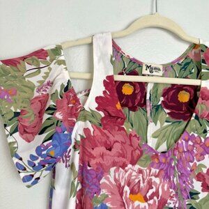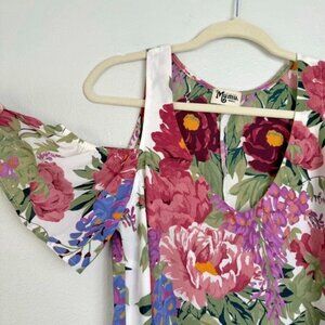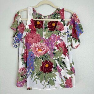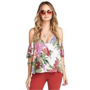Show Me Your Mumu white floral hazel ruffle cold shoulder top blouse S