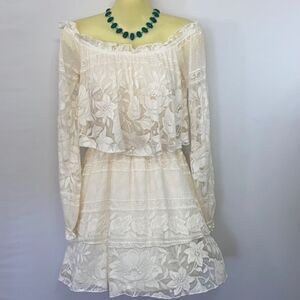 Show Me Your MuMu Dress Roses Cream Lace “Bess” Mini Excellent! Nwot XS