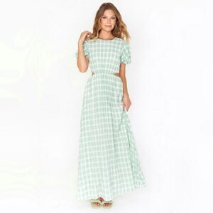 New with tags Show Me Your MuMu Eloise Green Gingham Cut Out Maxi Dress Size Extra Small.
