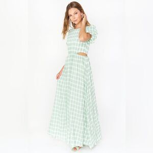 Show Me Your MuMu Eloise Green Gingham Cut Out Maxi Dress Size Extra Small NWT