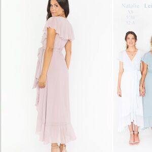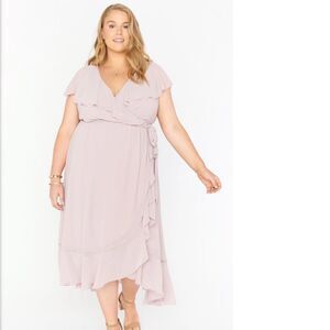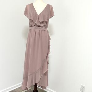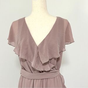 Show Me Your MuMu Jess Ruffle MIDI Dress Neutral Mauve Chiffon XL Wedding Party
