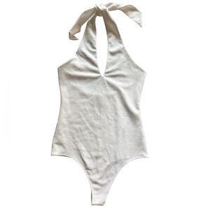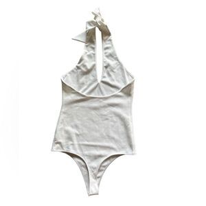 Show Me Your MUMU Women White Jasmine Halterneck Bodysuit Size XL