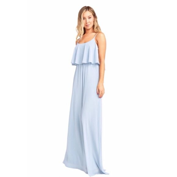 Show Me Your MuMu Caitlin Ruffle Maxi Dress Steel Blue Chiffon Women’s Medium