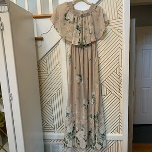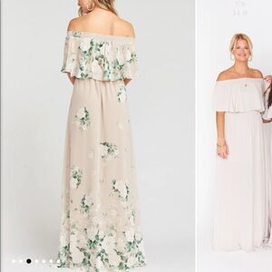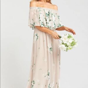 The Hacienda Maxi's versatile ruffle top has an elastic neckline to wear off the shoulder, strapless, and one shoulder. Cinches at the waist with elastic to flatter no matter which shoulder her ruffle sits on.