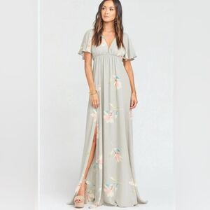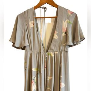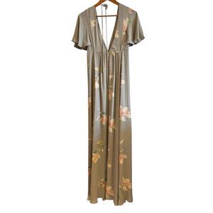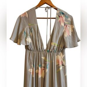 Show Me Your Mumu Faye Flutter Elegant Floral Deep V Maxi Dress in Gray Small