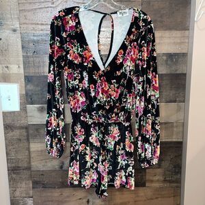 Show Me Your Mumu Floral Velvet Long Sleeved Romper, size medium. Excellent used condition. Super cute and fun!