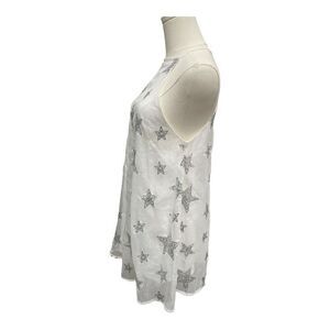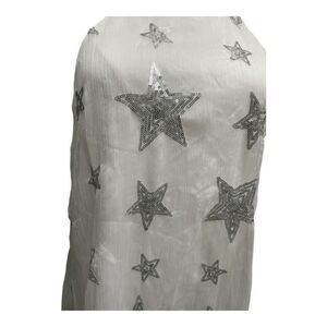 Show Me Your Mumu White Semi Sheer with Silver Sequin Stars Shift Dress Size Small. Measures 16” pit to pit and is 38” long from shoulder to hem. 100% Polyester. This dress is in excellent preowned condition with minimal signs of wear.