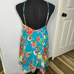 Show Me Your Mumu Aqua Blue Floral Strap Sheath Aqua Blue Mini Dress Sz S