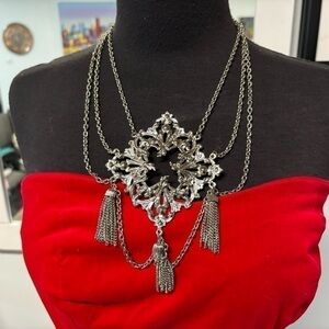 Comes with the coolest chandelier silver necklace that will turn heads! 3 strand, spring clasp.