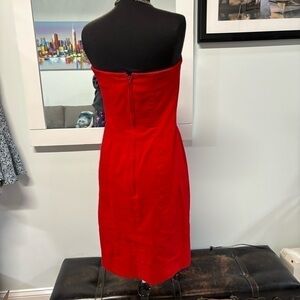 Dazzle in this red felt strapless boutique cocktail dress on those special occasions! Satiny lining. Back zip.