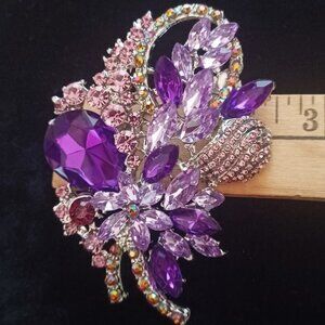 There are large purple rhinestones, and smaller lavender ones all set in Silver-tone