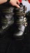 These platform heeled boots feature a bold black leather design accented by antique-styled brass buckles and zipper straps, offering a unique gothic and steampunk aesthetic The thick platform and dramatic spine-like heel add significant height, making them a standout choice for any fashion-forward ensemble.