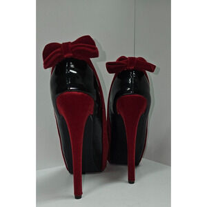 Show Story Womens Peep Toe Slip On Black Red High Platform Heels Size US 8