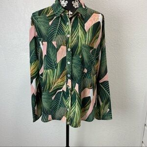 Show me Your Mumu Peachy Palm Button Front Long Sleeve Shirt