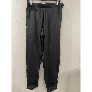 Women's Black Baggy Pants. These pants appear to be made of a satin-like material and have an elastic waistband and cuffs, resembling the style of joggers.