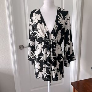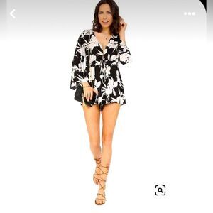 Show me your MuMu Roxy Romper In Lilly Collins Floral Tie Waist NWOT Deep V Nevk