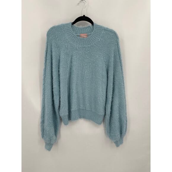 Keywords: Show me your MuMu Vienna frosty blue sweater, Fuzzy sweater, Ballon sleeve sweater