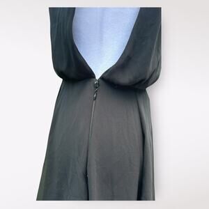 -Show me your Mumu Black Corinne Crossover Mini Dress, Deep V neck and back, open under the arms to the waist, zip closure. **Belt sash missing**