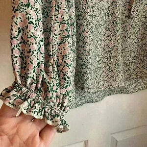Show me your Mumu Charlene peony please tunic top pink green floral Sz Medium