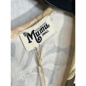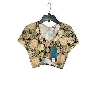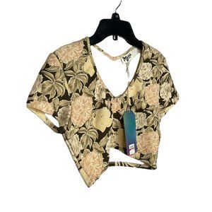 Show me your Mumu Miami crop top with short sleeves and in a sepia color tone. SMYM
