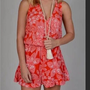 Show me your Mumu Riri Romper Red Aquarius Floral Ruffle Hem