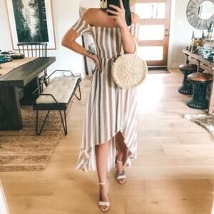 Show me your Mumu striped off shoulder willa smocked maxi dress size medium