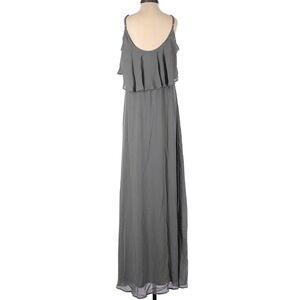 gray maxi, ruffle dress, cottagecore style, fairycore aesthetic, sleeveless gown, formal wear, long dress, layered ruffles, elegant occasion, smoky gray