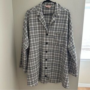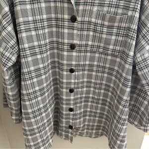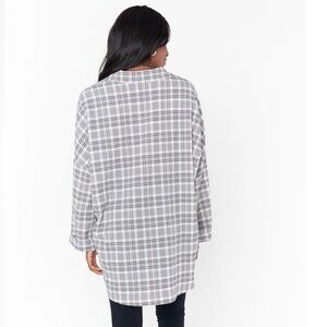Like your boyfriend's favorite button-down, but so much better. This plaid tunic has an oversized fit and front button closures making it easy to wear open, closed or tied up.