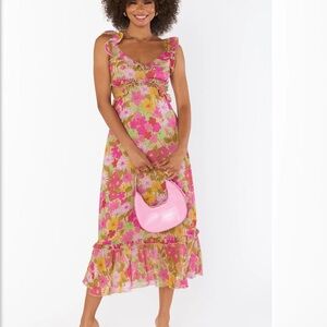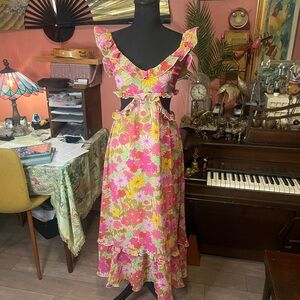 Show me your mumu lane midi dress in fun pink floral print Fun side cutouts M