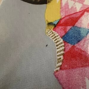 Good condition. Small black mark , small stain and small snag. All barely visible.