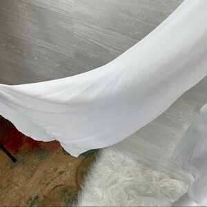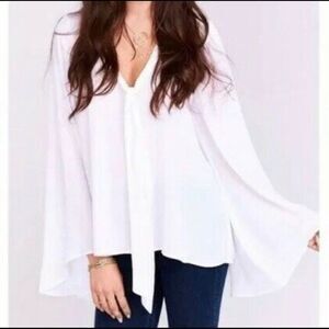 Show me Your Mumu Brynn Top size small. White polyester material with button down closure. Bell sleeves and tie Neck collar. High low hemline. No holes or stains.