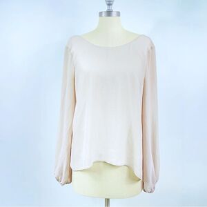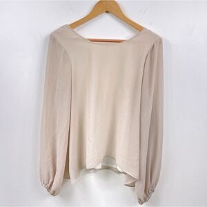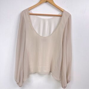 Show Me Your MUMU | beige / cream long sleeve blouse s/m (no size tag) please see measurements. Super cute , classy, elegant yet casual blouse with cream liner low back and elastic on wrists.