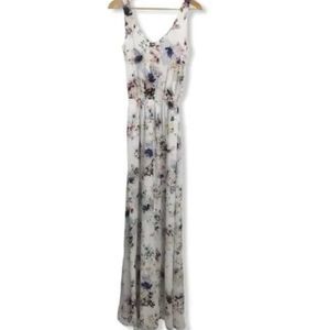Show Me Your Mumu Kendall Maxi Floral Bouquet Dress. Soft V neck and low back ultra flattering. Silky 100% polyester fabric. Lined as a mini dress. Side slit. Elastic waist. Perfect for a wedding!