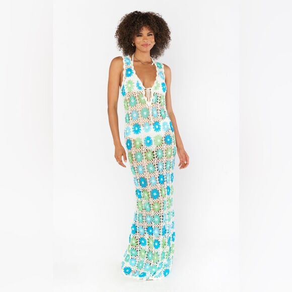 Show Me Your MuMu Vacay Tank Cover Up Dress in White Multi Floral Crochet Small