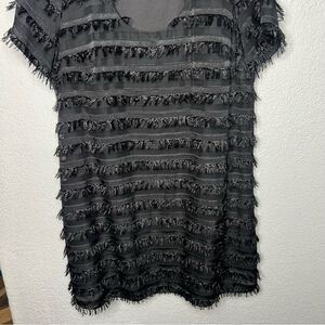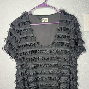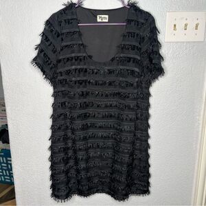 Show Me Your Mumu Demi Fuzzy Fringe Mini Short Sleeve Black Dress Sz M