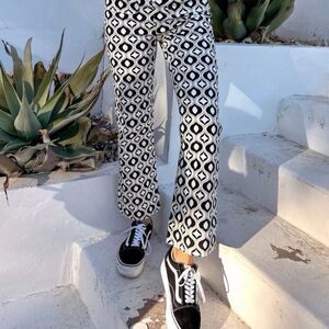 Show Me Your Mumu Jacksonville Cropped Geo Denim Jumpsuit Size Medium