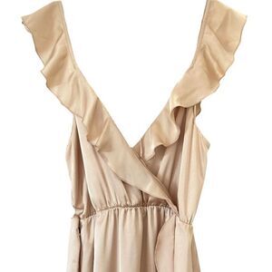 Show Me Your Mumu Samantha Ruffle Wrap Dress in Champagne Luxe Satin NEW Small